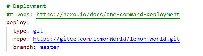 在Blog主目录下找到 _config.yml 打开进行配置,在代码的最底下找到此处