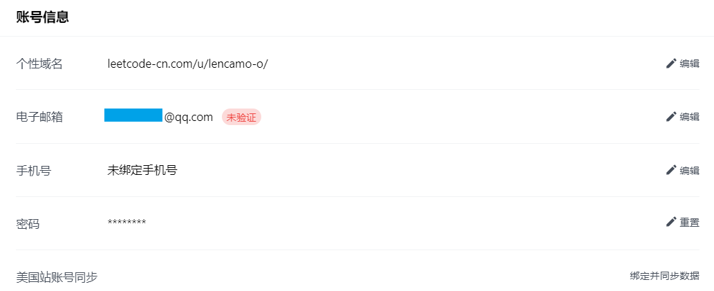 由于之前注册的LeetCode账号为手机号注册的,为了使用vscode的LeetCode插件,我有重新使用QQ邮箱注册了一个账号,而问题出现在我刚注册的LeetCode账号没有进行验证。