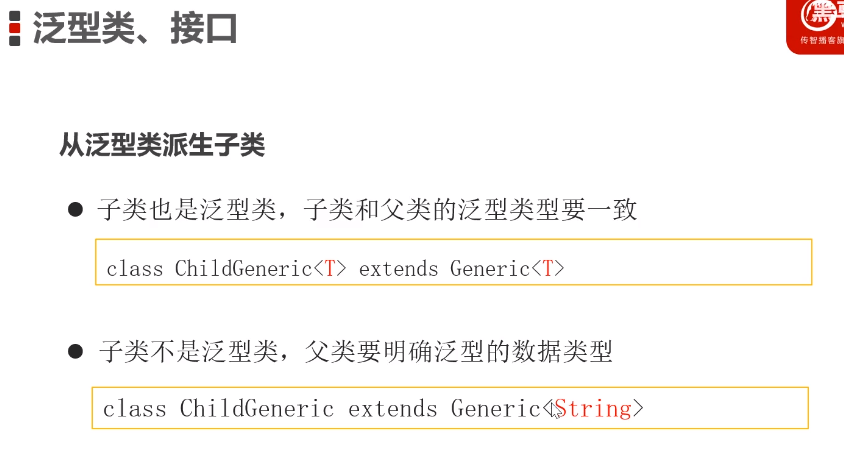 - 在创建子类对象时会先创建一个父类,若子类和父类的类型参数不一致则不符合要求,故子类和父类的泛型类型要一致。