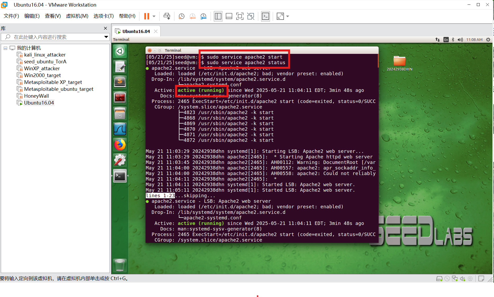 sudo service apache2 status #查看服务状态