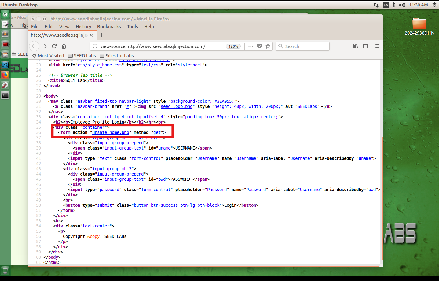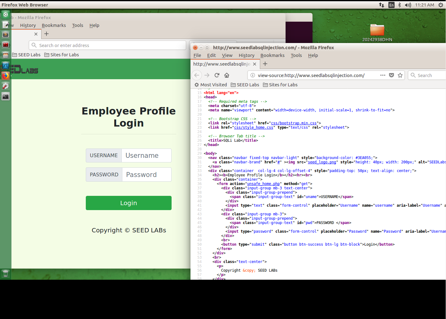 在火狐浏览器中输入网址www.seedlabsqlinjection.com,通过组合键ctrl+U查看网页源码