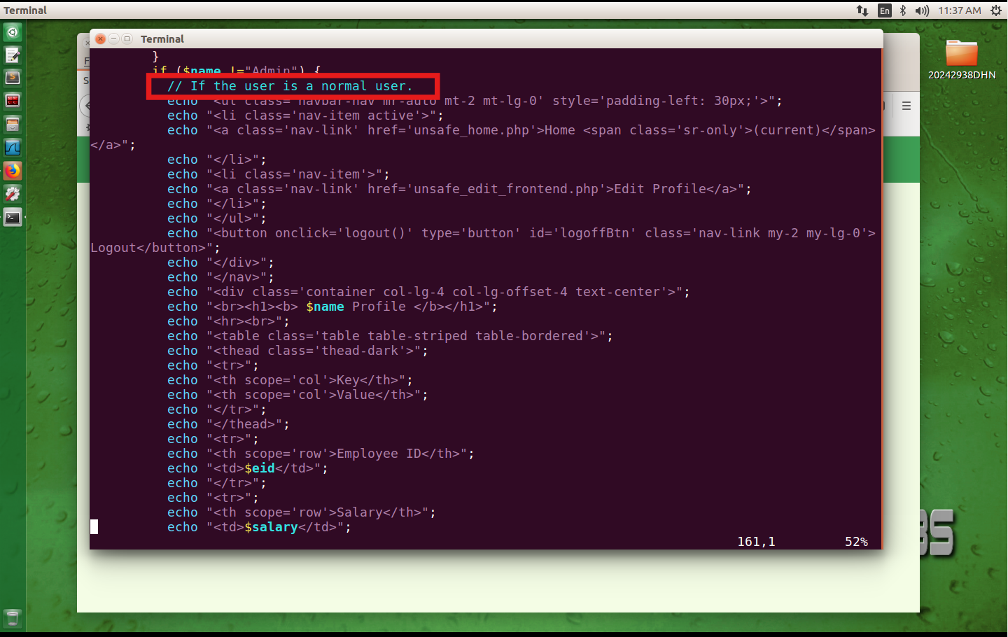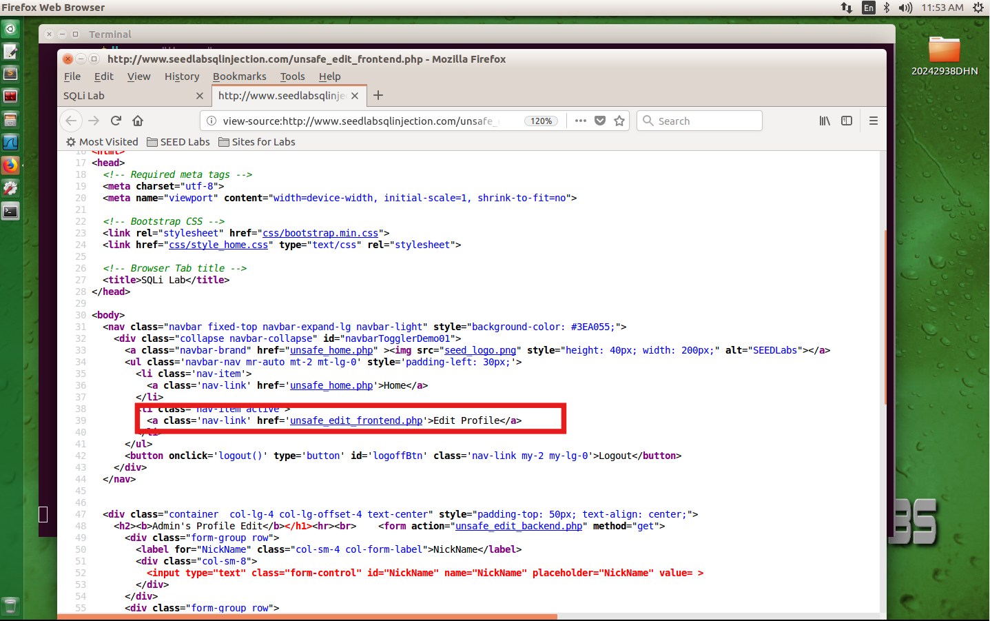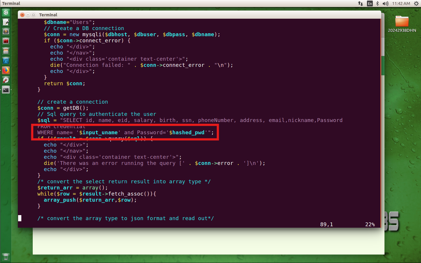 在终端中输入sudo vim /var/www/SQLInjection/unsafe_home.php