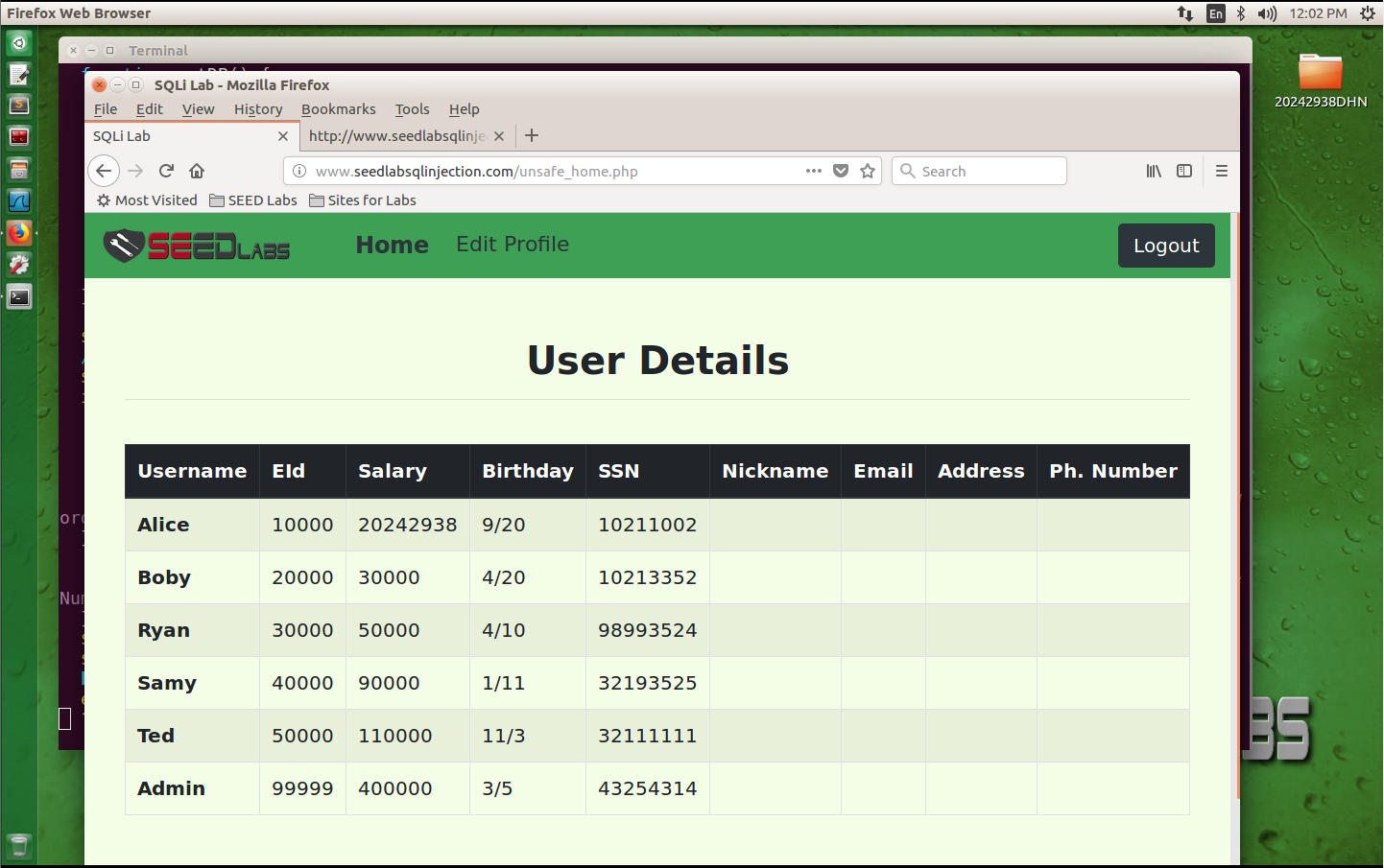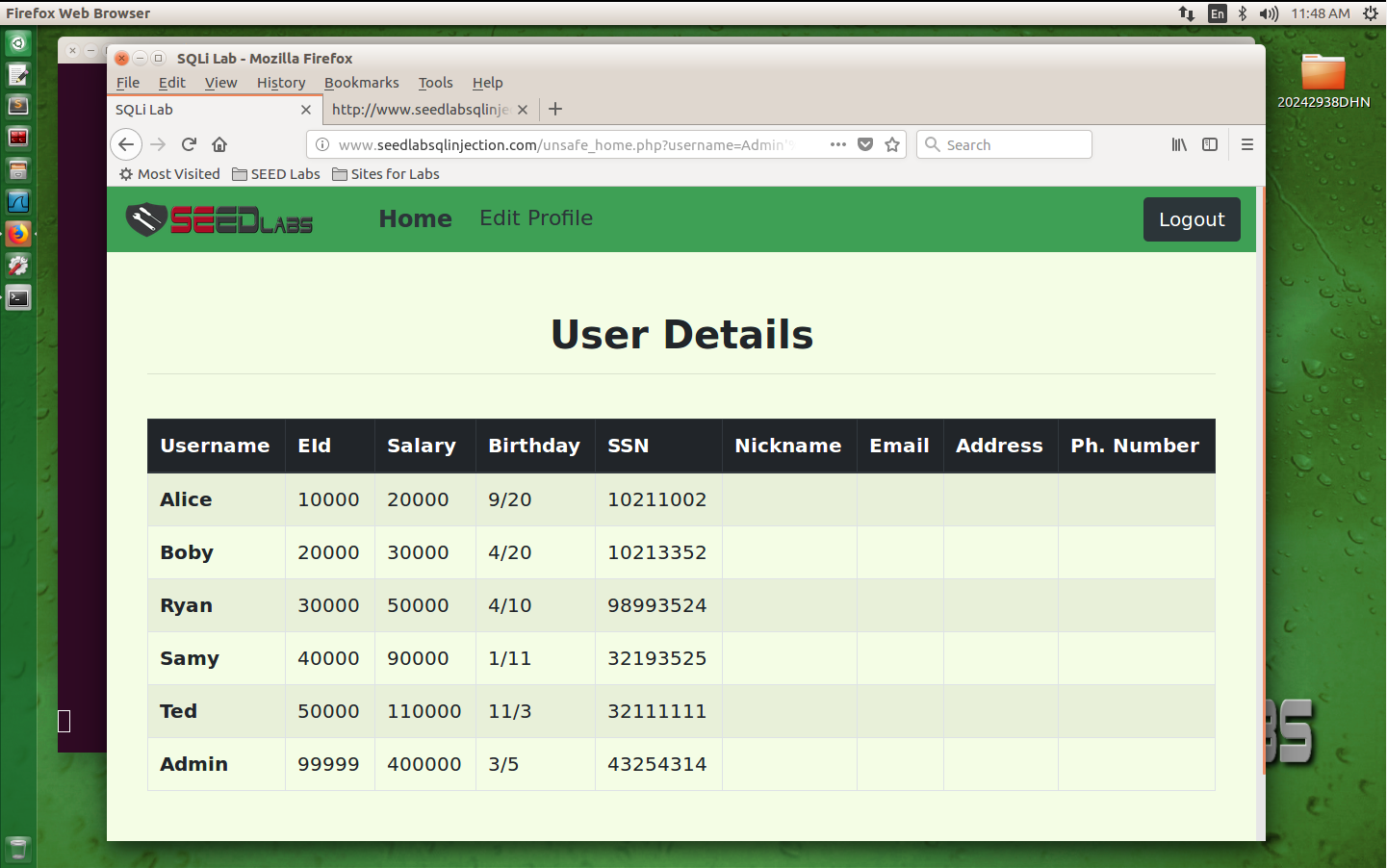 1. SEED SQL注入攻击与防御实验