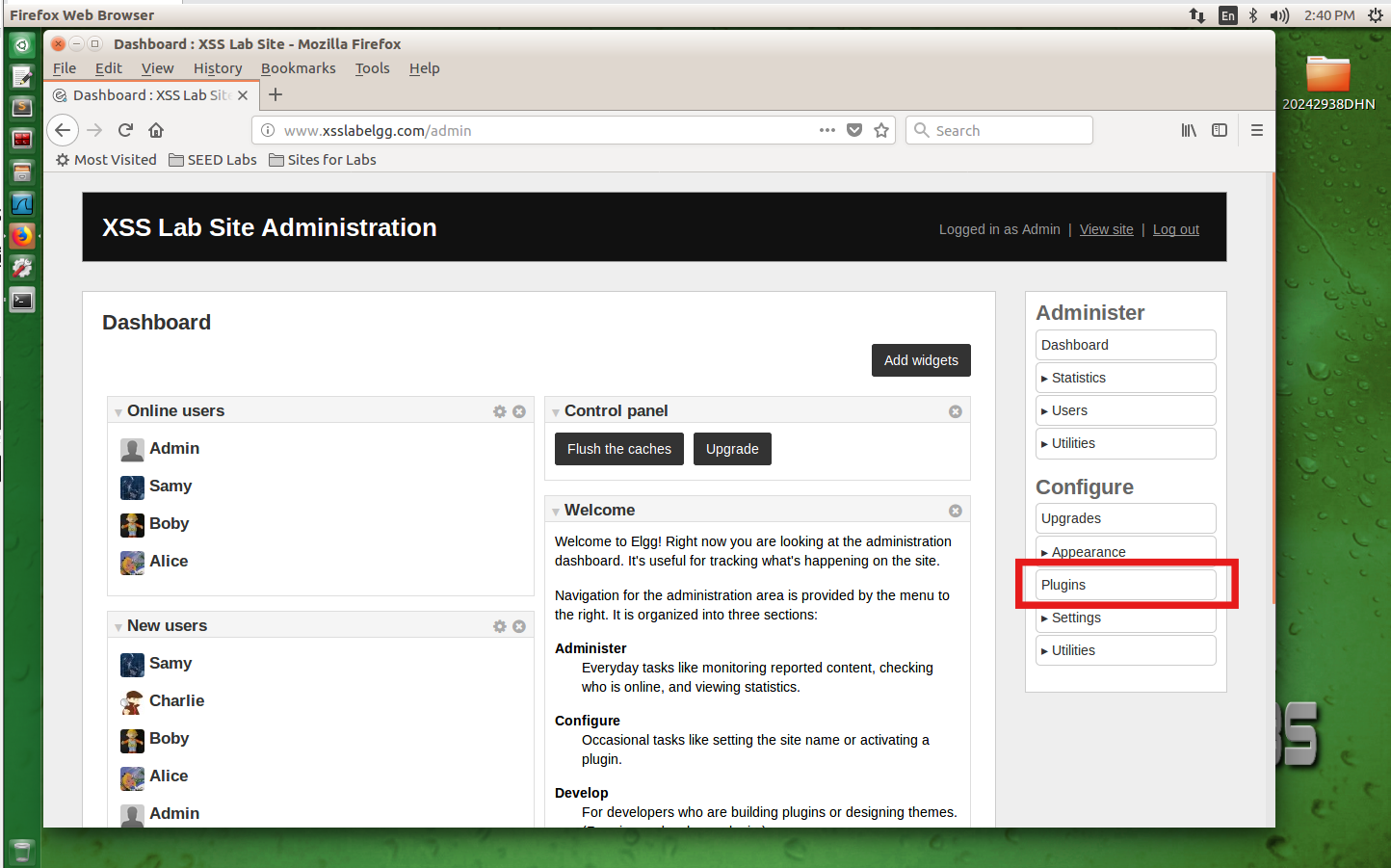 登陆管理员的账号Admin,密码:seedelgg