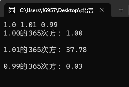 printf("%.2f的365次方:%.2f\n",x,ans);