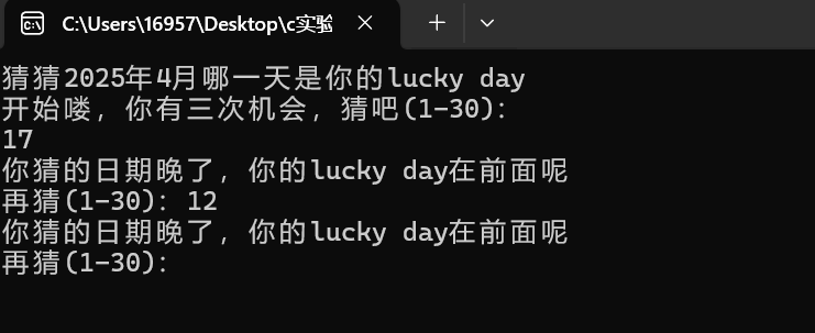 printf("猜猜2025年4月哪一天是你的lucky day\n");