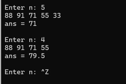 while(printf("Enter n: "), scanf("%d", &n) != EOF) {