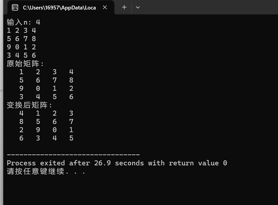 printf("变换后矩阵:\n");