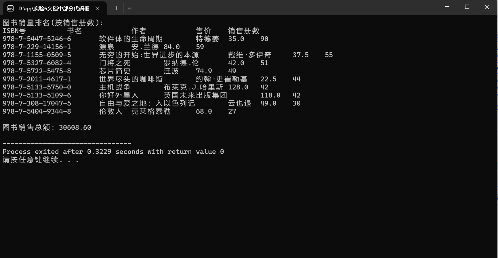 printf("图书销量排名(按销售册数): \n");