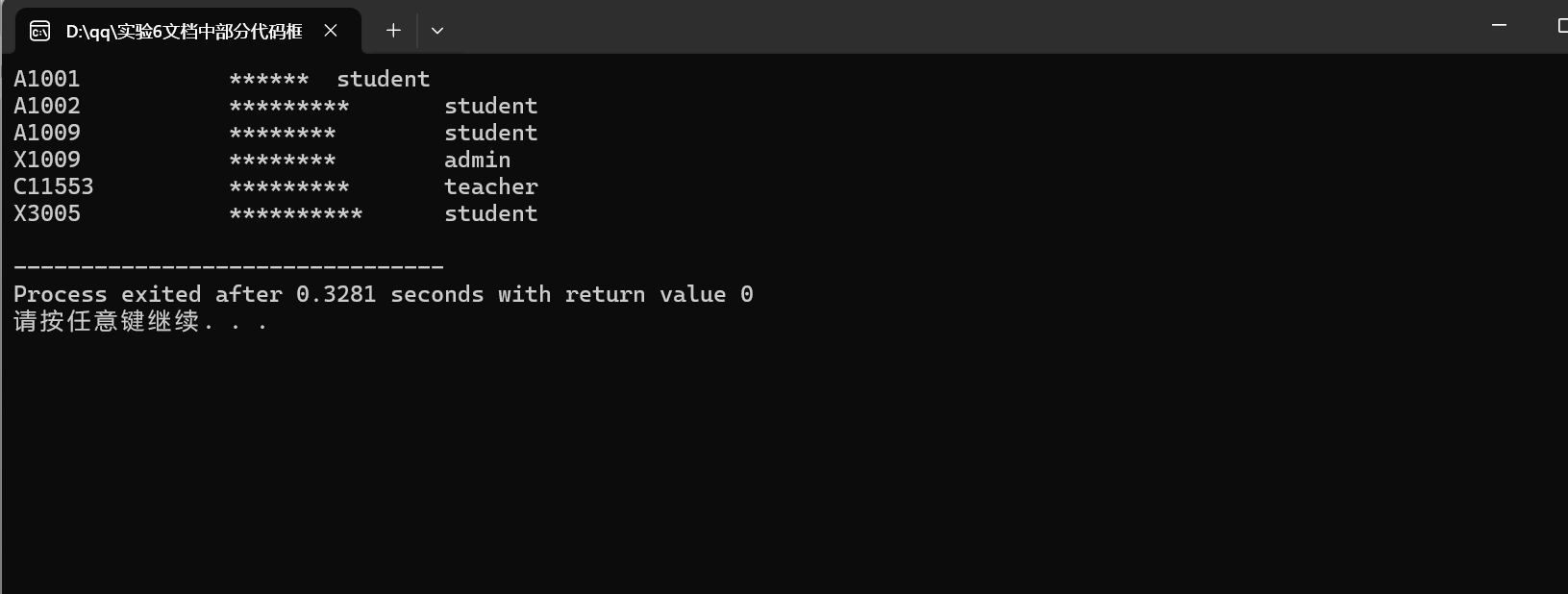 void output(Account x[], int n); // 输出账户数组x中n个账户信息,其中,密码用*替代显示