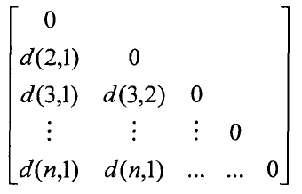 两个对象越不同,其值越大。因为d(i,j)=d(j,i),并且d(i,j)=0,因此相异度矩阵中的对角线上的值全为0。