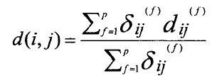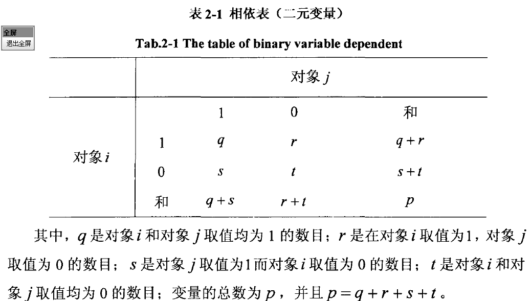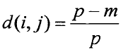 m是匹配的数目,即对象i和j取值相同状态的数目;p代表全部数目的变量。