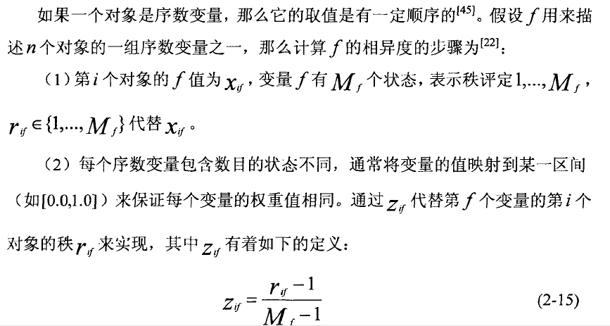 其中,d(i,j)表示对象i与j对象之间的相异度。通常,d(i,j)是一个非负值,对象i与对象j之间越相似,其值越接近于0;