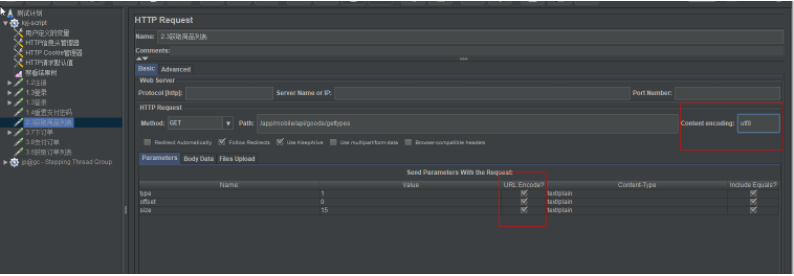 http内容参数:勾选编码(中文需要勾选)urlencoded编码