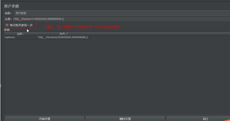 把用户参数放置在线程组下面,同时勾选用户参数中的【每次迭代更新一次】============符合预期