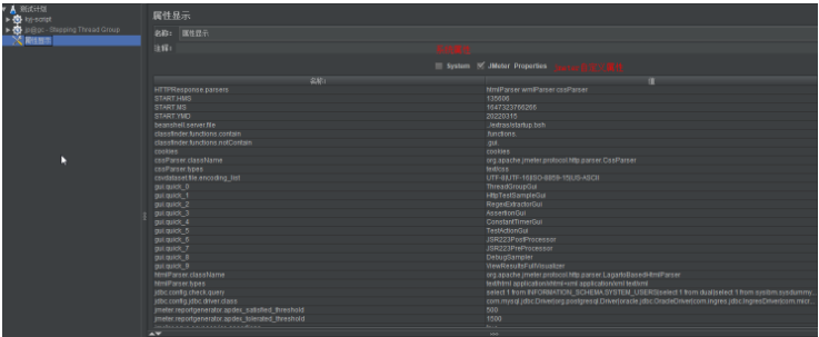 属性:.properties结尾的文件,都是jmeter的属性配置文件(静态属性、动态属性【jemter退出后内存会释放变量】)