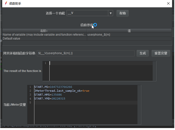 对变量名计算,返回拼接后的变量名; ${_V(userphone${m},)}-----获取到变量${userphone_1} | ${userphone_${m}}-----失败获取不到变量
