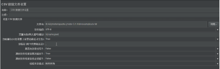 文件名:不能为空,文件【浏览】按钮,默认打开你jmx保存的地方,所以建议csv文件放在jmx脚本一起