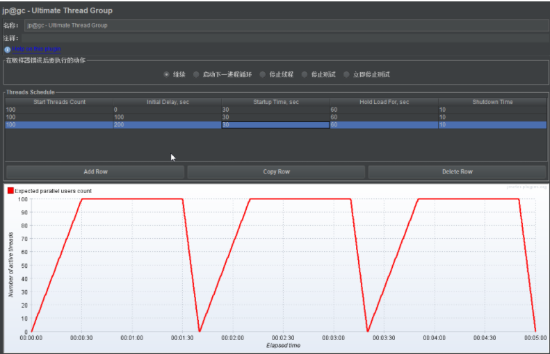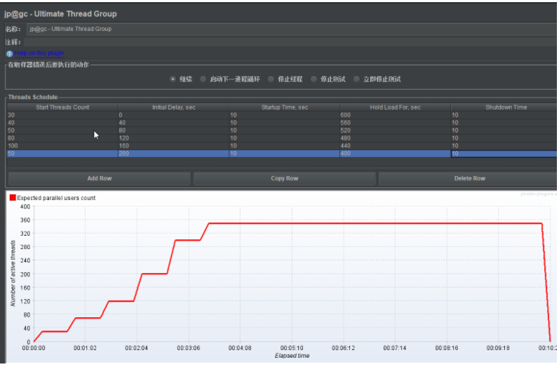 思考题目: 用Ultimate Thread Group 这个线程组去设计一个阶梯线程组负载测试场景。