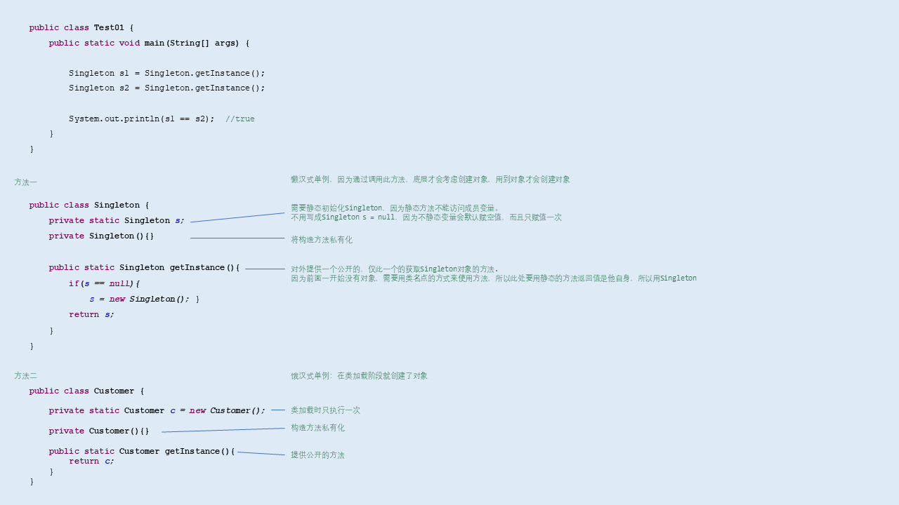 public static Singleton getInstance(){ //Singleton类型的getInstance的方法(相当于int i)