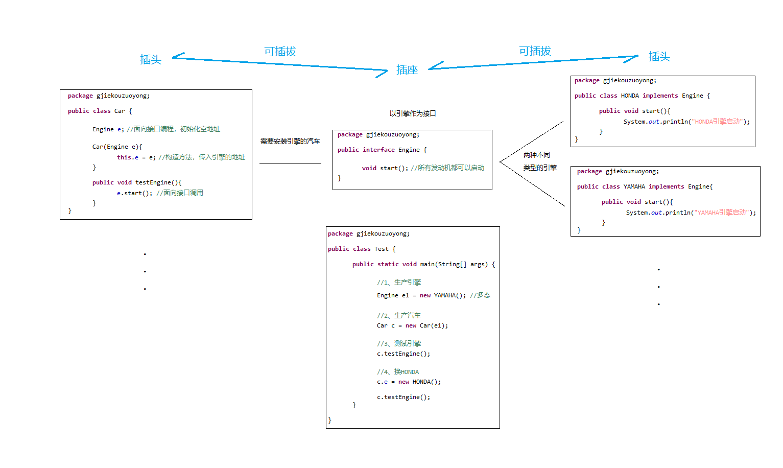 e.start(); //面向接口调用