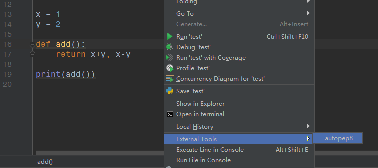 第一种,右键选择【External Tools】-->【autopep8】