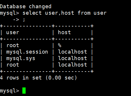 我可能已经有这个账号了,我去查一下,查看一下root@%是不是已经存在了,输入: