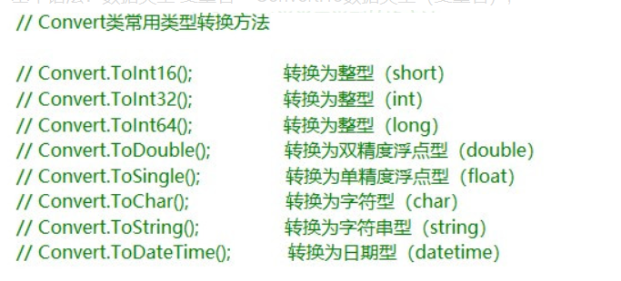 基本语法:数据类型 变量名 = Convert.To数据类型(变量名);