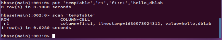 2.启动HDFS,启动HBase,进入HBaseShell命令行。