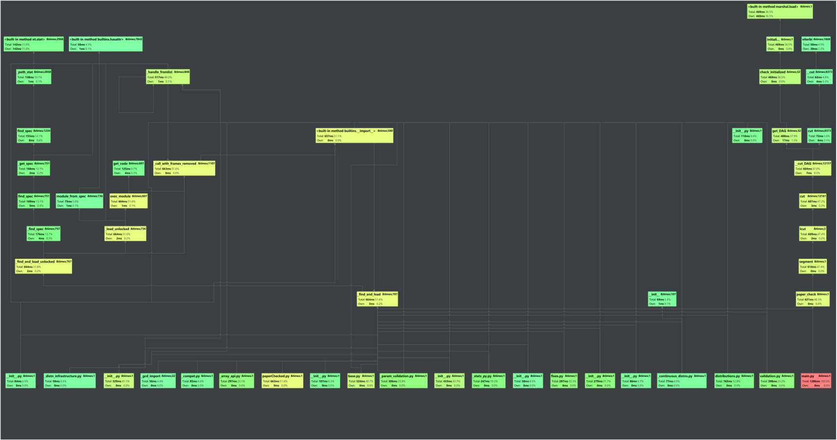 由图分析可知,右下边main.py入口文件paper_check函数执行时间为621ms,且主要花费时间在对文章进行分词,调用jieba库中lcut函数,由于对文章进行分词的过程由文章长度和构成决定,所以在性能上无法进一步优化