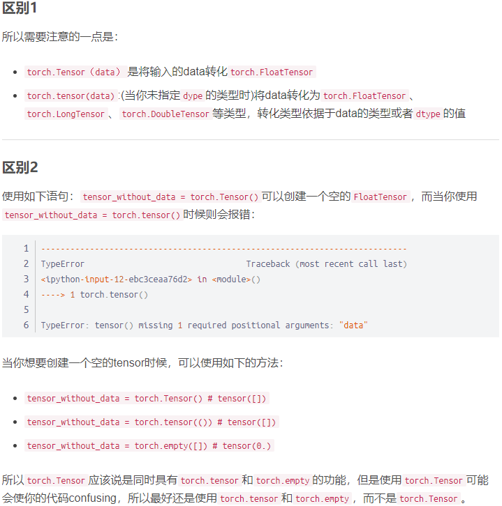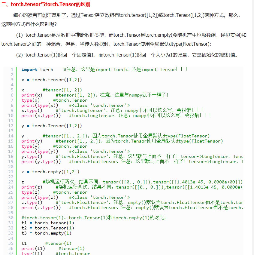 上述代码中t5,t6的区别在于,t6是类构造函数,t5那个小写的tensor表示的张量函数是我们所说的为我们构建张量对象的工厂函数。