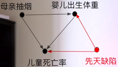 主要问题是,除了抽烟外,在体重和婴儿死亡之间,还有其他的干扰因子,有很多先天原因也会导致婴儿体重过轻或者是死亡;而这些先天的原因可能让婴儿的死亡率,比抽烟造成的死亡率来的更高。