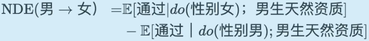 性别对总的通过率的影响其实就是nde从男到女的一个动作,减去nie从女到男的这样一个动作。