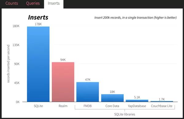 为了彻底解决性能问题,核心数据引擎C++打造,并不是建立在SQLite之上的ORM。如果对数据引擎实现想深入了解可以查看:Realm 核心数据库引擎探秘。因此得到的收益就是比普通的ORM要快很多,甚至比单独无封装的SQLite还要快。