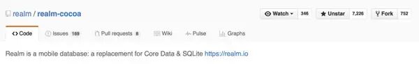 Realm大部分源码公开在github上:realm。项目在新建不到两年里,已经得到开源社区大量关注: