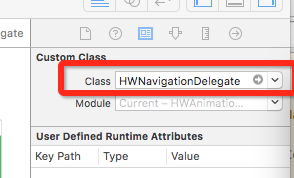 并在选中Object,在右边将其类改成刚刚创建的HWNavigationDelegate