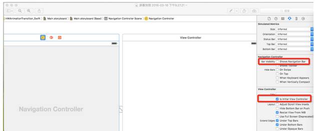 把右侧的Shows Navigation Bar去掉,因为这个demo里面并不需要导航栏,同时保证Is Instal View Controller是被勾上的(不知道的童鞋可以去掉看一下效果),这里默认的都是勾选上的。然后在新建一个viewController,并设置其继承于ViewController,如下