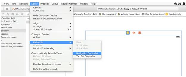 新建工程,这里用的是Swift,选中storyboard,然后加上一个导航,如下