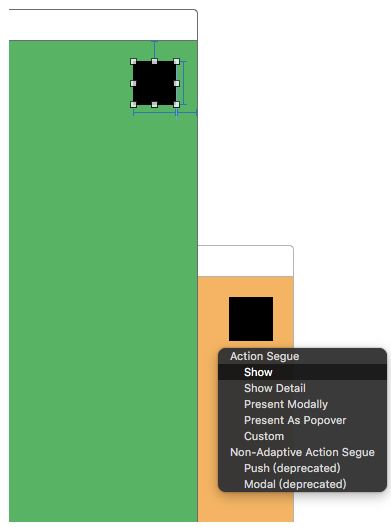 然后右键一直按住第一个按钮拖拽至第二个VC(也就是黄色背景的)点击show