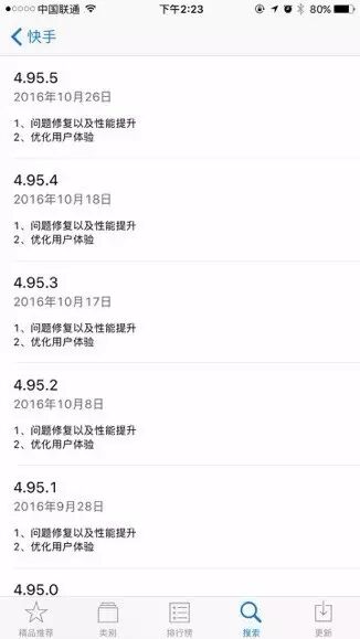 但是,如果你仔细看快手在 App Store 上的更新说明的话,你就会发现快手近一年的更新说明只有两条: