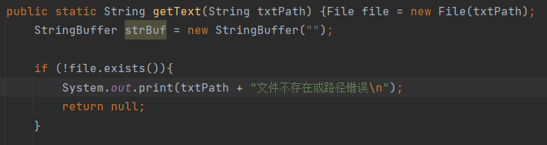 - getText():传入 txt 路径读取 txt 文件,返回读取到的内容