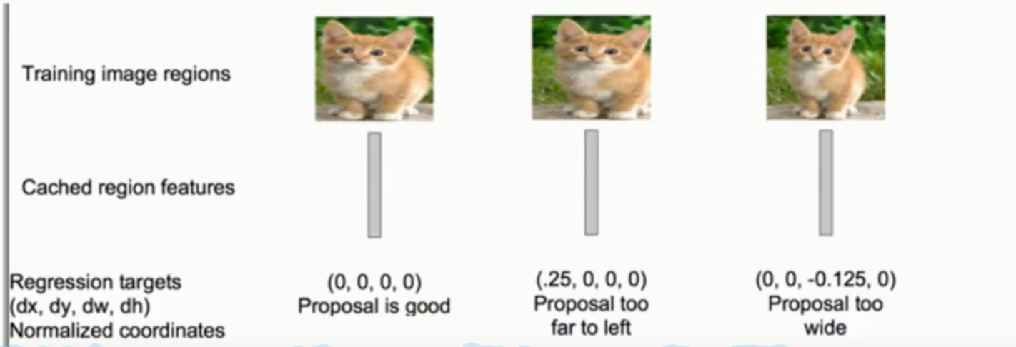 5. 训练阶段:使用图像特征训练一个回归器(dx, dy, dw, dh),分别代表在各个方向和尺度的变换调整