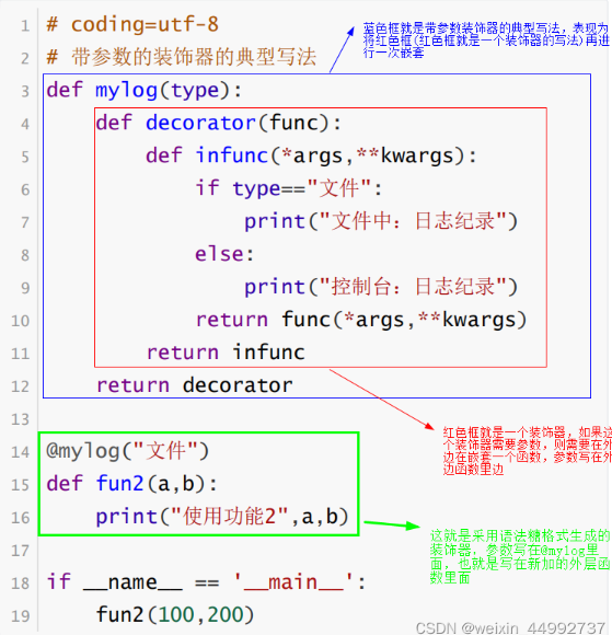 使用装饰器的时候就在定义函数前 @装饰器的名称