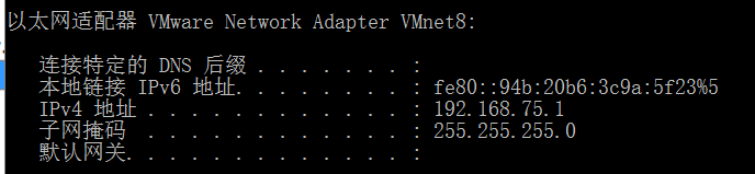 2、这里可以确认NAT网络类型对应的虚拟网卡是vmnet8