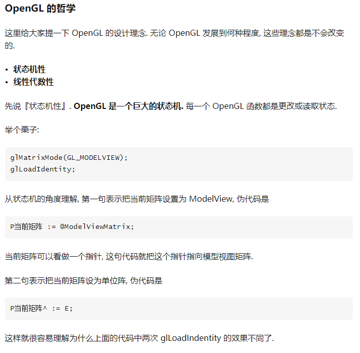 glLoadIdentity; // 设置当前矩阵为单位阵,矩阵设置为单位阵