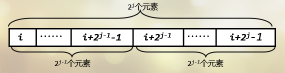 两部分,也就是从i开始长度为 2 j-1 的区间以及从 i + 2 j-1 开始 长度为 2 j-1 的区间即 f [ i ][ j-1 ] 和 f [ i +(1 << (j-1)) ][ j-1 ],因此我们得到: