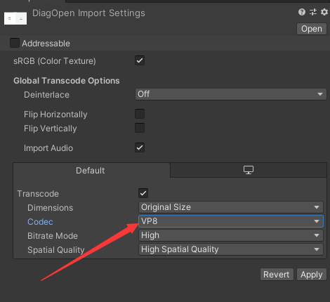 设置视频格式为VP8,无需压缩分辨率与码率。