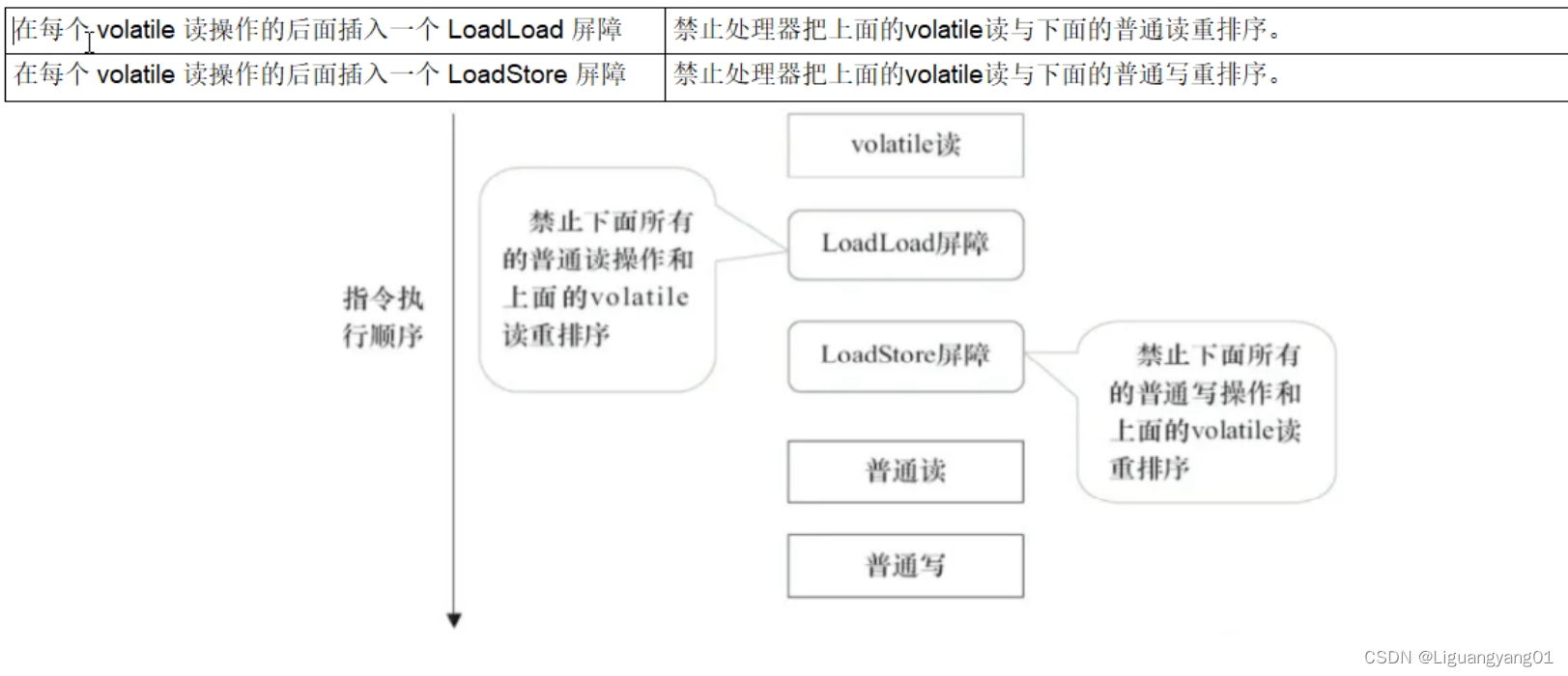 读屏障(Load Memory Barrier):处理器在读屏障之后的读操作,都在读屏障之后执行。也就是说在Load屏障指令之后就能够保证后面的读取数据指令一定能够读取到最新的数据。