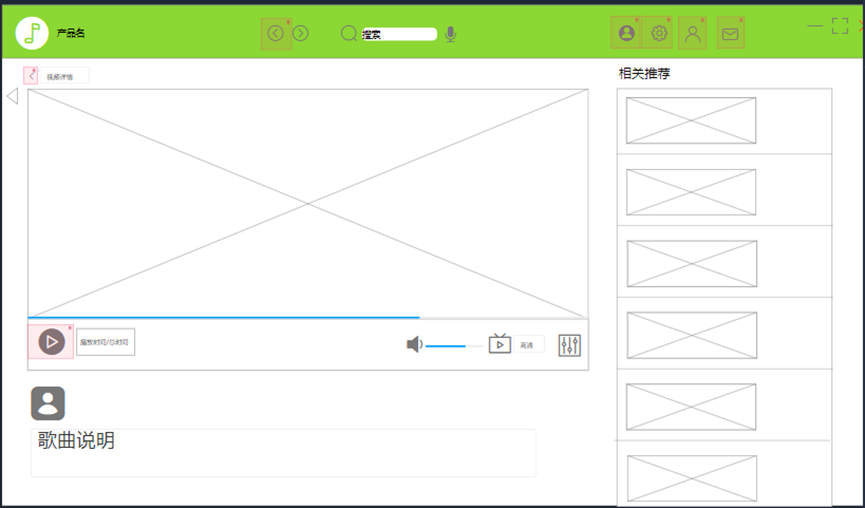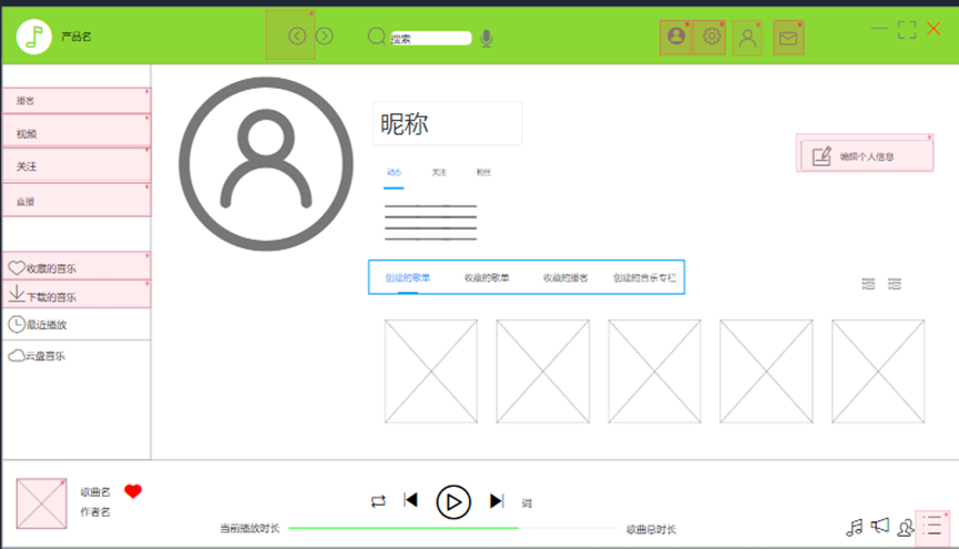 该原型设计参考了网易云音乐PC端的界面设计,在其基础上增添个人元素,给用户