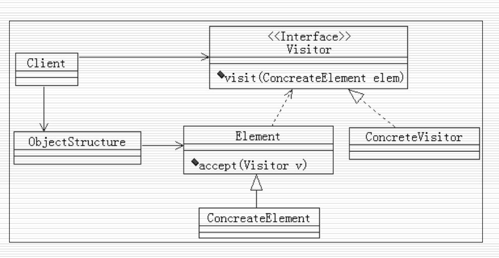 accept方法中调用了visit方法,而不同的visitor对象有不同的visit方法(传入this指针【Element对象】),这样就实现了不改变对象本身但是做出了新操作。